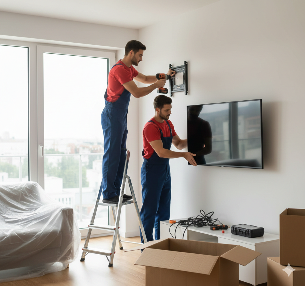 Our team carefully measures, drills, and installs mounts using professional tools and heavy-duty wall anchors to ensure maximum stability and safety. We conceal visible wiring wherever possible for a clean and modern look. Whether you need TV installation in an apartment, villa, office, retail shop, or hotel, we guarantee damage-free wall fixing and perfectly leveled installation.
